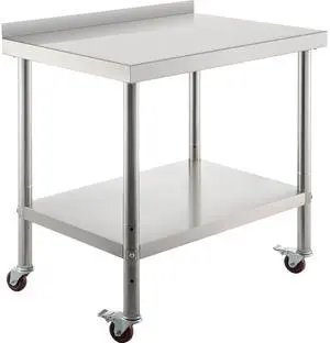 VEVOR Stainless Steel Prep Table, 36 x 24 x 35 Inch, 440lbs Load Capacity Heavy Duty Metal Worktable with Backsplash Adjustable Undershelf & 4 Casters, Commercial Workstation for Kitchen Restaurant
