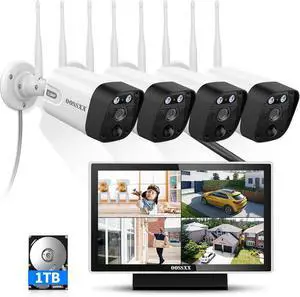 Gadpiparty Wireless Security Camera System 10CH Expandable with 10.1" Monitor 4pcs 3MP Indoor Outdoor Camera 1-Way Audio Night Vision Motion Detection Home Business CCTV Surveillance 1TB HDD