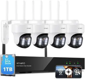 XMARTO 10X Zoom WiFi6 Security Camera System Wireless Outdoor/Indoor, 10CH 4K NVR with 4X 2K HD Dual Lens Cameras with Auto Tracking, 1TB HDD (Plug-in 24/7 Surveillance, Long Range WiFi)