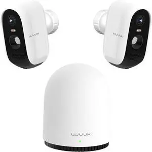 WUUK Security Cameras Wireless Outdoor, Indoor Camera, Home Surveillance System, 2K, No Monthly Fee, Motion Alert, Night Vision, 2.4/5 GHz WiFi, Compatible with Alexa & Google, Homebase + 2-Camera Kit
