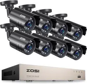 ZOSI 8CH 5MP Lite Security Camera System with AI Human/Vehicle Detection,8 Channel CCTV DVR and 8 x 1080p 1920TVL Weatherproof Surveillance Cameras Indoor Outdoor,Night Vision,Remote Access,No HDD