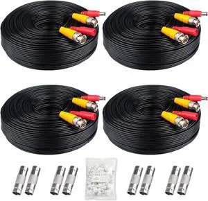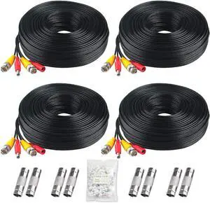 4 Pack 200 Feet BNC Video Power Cable Wire Video Security Camera Wire with Connectors for CCTV Camera DVR Surveillance System