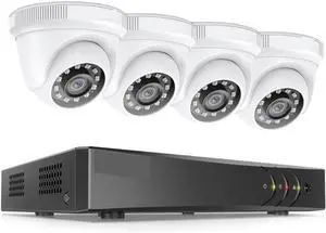 Security Camera System with 500GB HDD, 4pcs Wired Surveillance CCTV Dome Cameras for Indoor Outdoor, 4CH AHD TVI 5MP Lite DVR Recorder, Smart Motion Detection, Night Vision, Waterproof