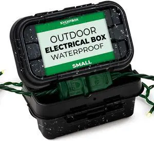 Sockitbox Original Outdoor Electric Box Waterproof - Small Outdoor Extention Cord Cover with 6 Cable Entry Waterproof Enclosure for Power Strips, Plugs, Timers, Lights - Black