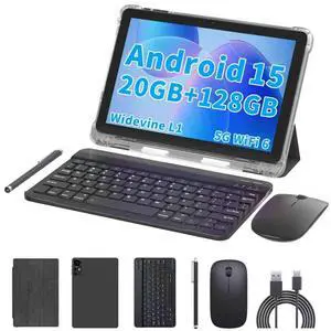 2025 Tablet 10 Inch Android 14 Tablets with Keyboard, 22GB RAM 128GB ROM, Widevine L1, Octa-Core, 8000mAh Battery, 5G Wifi, HD IPS Display, TF 1TB, GPS, Mouse, Case, Split Screen, Metal Body -Blue
