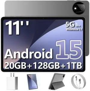 11 inch Android 15 Tablet, 20GB RAM 128GB ROM , 2TB Expand, 2.4G&5G WiFi+Cellular, Octa-Core, 8000mAh, 5MP+13MP Dual Camera,T-Mobile SIM Card Support, Tableta with Keyboard , Case, Mouse, Stylus