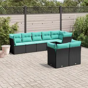 vidaXL Garden Sofa Set Black, Blue