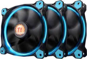Thermaltake Riing 12 High Static Pressure Circular Ring Blue LED Case/Radiator Fan with Anti-Vibration Mounting System Triple Pack Cooling CL-F055-PL12BU-A