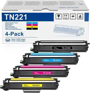 TN-221 TN221 Toner Cartridges 4 Pack Replacement for Brother 221 TN221 TN225 Toner Cartridges MFC-9330CDW MFC-9340CDW HL-3170CDW HL-3140CW MFC-9130CW Printer (1Black/1Cyan/1Magenta/1Yellow)