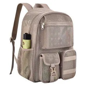 AROUVOG Mesh Backpack for School,with Inner Laptop Compartment,Semi-transparent Bookbag with Bungee and Comfort Padded Straps for Beach, Swimming, Sports, Work, Travel-Khaki