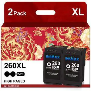 GREENBOX Remanufactured 260XL High-Yield Black Ink Cartridge Replacement for 260XL 260 XL PG-260 XL for TS5320 TS6420 TR7020 All in One Wireless Printer ( 400 Pages, 2 Black, 2-Pack )