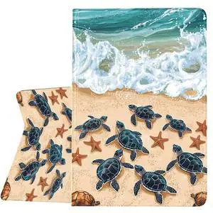 ZHJLZQAI Case for iPad 9.7 inch 5th/6th Generation 2017/2018,Protective Leather Case for ipad 9.7 Air 1/2 Gen,Auto Wake/Sleep,Slim Adjustable Viewing Angle Stand.Sea Turtles on The Beach