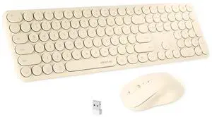 FCPLU x UBOTIE Wireless Keyboard and Mouse Combo with 110 Round Keycaps, Power Switch, and Scissor-Switch Typing Feel Ideal for Office Use(Khaki)