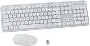 UBOTIE Colorful Computer Wireless Keyboard Mouse Combos, Typewriter Flexible Keys Office Full-Sized Keyboard, 2.4GHz Dropout-Free Connection and Optical Mouse (Blue-White)