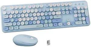 UBOTIE Colorful Computer Wireless Keyboard Mouse Combos, Typewriter Flexible Keys Office Full-Sized Keyboard, 2.4GHz Dropout-Free Connection and Optical Mouse (Blue-Colorful)