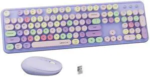 UBOTIE Colorful Computer Wireless Keyboard Mouse Combos, Typewriter Flexible Keys Office Full-Sized Keyboard, 2.4GHz Dropout-Free Connection and Optical Mouse (Purple-Colorful)