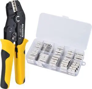 Wire Crimping Tool Kit for Non-Insulated Terminals Ratcheting Crimper Plier AWG20-10 with 240pcs BN Non-Insulated Butt Connectors Kit Crimp Connectors Set