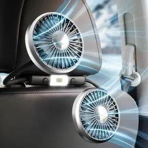 xuenair 360 Hose Cooling Fan for Car Backseat Kids Baby Rear Facing, Portable USB Car Fan for Vehicle SUV RV Pickup Truck Headrest - Powerful 3-Speed LED Light