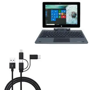 BoxWave Cable Compatible with iView Magnus (10.1 in) - AllCharge 3-in-1 Cable - Jet Black