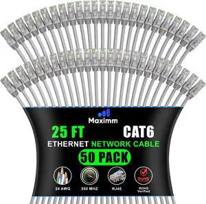 Maximm Cat 6 Ethernet Cable 25 Ft, 100% Pure Copper, Cat6 Cable LAN Cable, Internet Cable and Network Cable - UTP (Black)