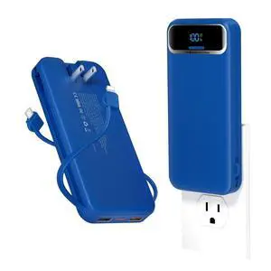 Portable Charger 3 in 1, 10000mAh Power Bank Built in Cable and AC Wall Plug 65W, Phone Battery Pack Fast Charging 35W Max, USB C Travel Chargers for iPhone 16 15 Series, Samsung, MacBook, Laptop