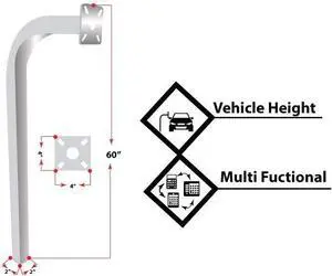 Standard Direct Burial Goose Neck Pedestal Aluminum 2" X 2" X 60" gate keypad mounting Post (White)