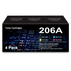 206A M283fdw Toner Cartridges 4 Pack Set with Chip Compatible Replacement 206A W2110A W2111A W2112A W2113A Color Pro MFP M283fdw M283cdw M282nw Pro M255dw M255nw M255 M283 Printer Ink