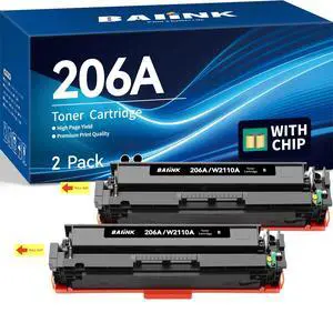 BAIINK 206A Black Toner Cartridges (with Chip) Compatible for HP 206A Black Toner Cartridges W2110X W2110A for Pro MFP M283fdw M283cdw M255dw M283 M255 M282 Printer ( 2 Pack )