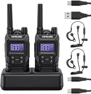 Ketelese T4 Walkie Talkies Long Range, IP67 Waterproof Dustproof Two Way Radio, Walkie Talkie Earpiece with Mic for Adult, USB, NOAA, VOX, Group Call, PTT(Black/ 2Pack)
