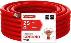 AWELTEC 0 Gauge Wire, 25 Feet Red Power Ground Cable, Primary Automotive Wires, Copper Clad Aluminum for Battery Cable, Car Audio, Amp Wiring, Generator, Automotive, RV