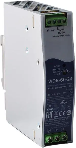 WDR-60-24 24V 2.5A 60W Industrial Power Supply, Ultra Slim, Wide Input Voltage, for Automation Control