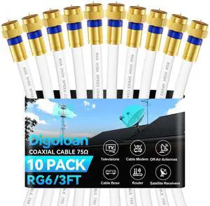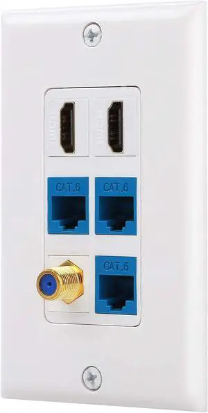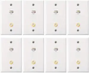 Wall Plate, Cat6 Gold-Plated Cable TV Coax F Type Port Wallplate White (5Pack)