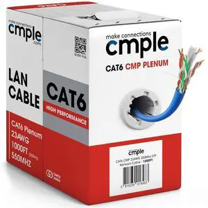 Cmple - Plenum Cat 6 Ethernet Cable 1000ft, Cat6 Cable (CMP) 550MHz Unshielded Twisted Pair (UTP) 10 Gigabit Solid Network Cable, Bulk Ethernet Cable - Blue