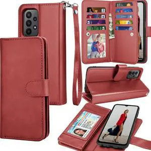 Galaxy A23 Case, Galaxy A23 5G Wallet Case, Tekcoo Luxury PU Leather Cash Credit Card Slots Holder Carrying Folio Flip Cover [Detachable Magnetic Hard Case] Kickstand for Samsung A23 [Wine Red]