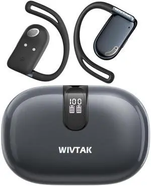 WIVTAK Wireless Earbuds, Open-Ear Sports Bluetooth Headphones, Acoustic Chamber Audio, ANC Call Noise Reduction, Smart Digital Display Charging Case, IPX5 Water Resistant, for Cycling Work