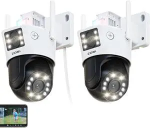 ZOSI 2 x C298 Max 4K 8MP Dual-Lens(2x4MP) Wired WiFi PTZ Security Camera Outdoor with Wide Angle, 2.4GHz Plug-in 360 Camera, 8X Hybrid Zoom, Person/Vehicle Detect, Spotlight Siren, Color Night Vision
