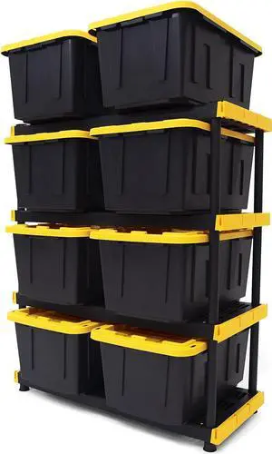 Black & Yellow®, Shelving Unit and Heavy Duty Storage Containers, Extremely Durable® (Shelf + 27 Gallon Container (8-Pack)