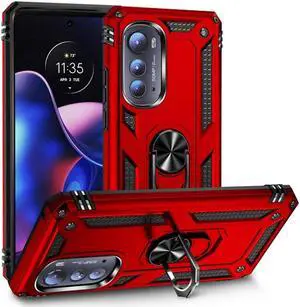 Military Grade Hybrid Case with Ring Grip for Motorola Edge 2022 - Red