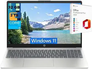 HP 15 Laptop, 15.6" FHD (1920 x 1080) Display, Intel Core i3-N305 8 Cores Processor, Intel UHD Graphics, 32GB DDR4 2 TB PCIe SSD, Wi-Fi 6 - Bluetooth 5.3, Windows 11 ,Office 2024 License