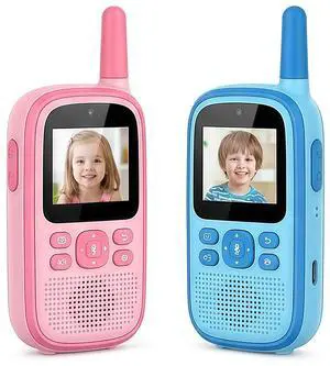 Video Walkie Talkies for Kids, 2 Pack Rechargeable Kids Walkies Talkies with Video Call & Voice Changer, Boys Girls Toys Ages for 3-12, Family Games, Indoor Outdoor Play and Camping(Blue & Pink)