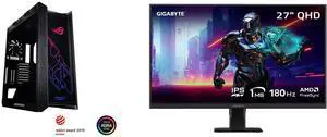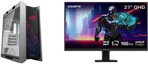 ASUS ROG Strix Helios GX601 White Edition RGB Mid-Tower Computer Case for ATX/ EATX Motherboards with Tempered Glass, Aluminum Frame, GPU Braces, 420mm Radiator Support and Aura Sync GIGABYTE 27" QHD 2K 1440P 180hz IPS with AMD FreeSync Pre
