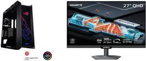 ASUS ROG Strix Helios GX601 RGB Mid-Tower Computer Case for up to EATX Motherboards with USB 3.1 Front Panel, Smoked Tempered Glass, Brushed Aluminum and Steel Construction, and Four Case Fans GIGABYTE 27" QHD 2K 1440P 300Hz/OC 320Hz IPS wi