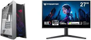 ASUS ROG Hyperion GR701 EATX full-tower computer case with semi-open structure, tool-free side panels, supports up to 2 x 420mm radiators, built-in graphics card holder,2x front panel Type-C ASUS ROG Strix 27" QHD 2K 1440P 240Hz with AMD Fr