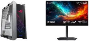 ASUS ROG Strix Helios GX601 White Edition RGB Mid-Tower Computer Case for ATX/ EATX Motherboards with Tempered Glass, Aluminum Frame, GPU Braces, 420mm Radiator Support and Aura Sync GIGABYTE 27" UHD 4K 240Hz with AMD FreeSync Premium Pro &