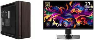 ASUS ProArt PA602 Wood Edition Modern Black E-ATX Mid-Tower Case with Tempered Glass, Supports 440mm GPUs, 420mm Radiators, Includes One 140mm and Two 200mm Pre-Installed Fans. MSI 27" WQHD 2K 1440P 240Hz with Adaptive Sync 0.03ms OLED Gami
