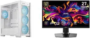 ASUS TUF Gaming GT302 ARGB White Edition ATX Mid-Tower Case Four 140 x 28 mm ARGB fans for high airflow and static pressure, interchangeable side panel, hidden-connector motherboard support MSI 27" WQHD 2K 1440P 240Hz with Adaptive Sync 0.0