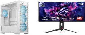 ASUS TUF Gaming GT302 ARGB White Edition ATX Mid-Tower Case Four 140 x 28 mm ARGB fans for high airflow and static pressure, interchangeable side panel, hidden-connector motherboard support ASUS ROG SWIFT 34 inch QHD 2K 1440P 360Hz AMD Free