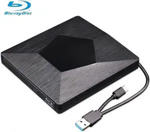 Vszerda External 3D Blu Ray DVD Drive Burner, Wihool Ultra Slim USB 3.0 and Type-C Blu Ray BD CD DVD Burner Player Writer Reader Disk for Mac OS, Windows xp/7/8/10, Laptop PC (Black)