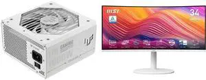 ASUS TUF Gaming 1000W 80+ Gold White Edition (1000 Watt, Fully Modular Power Supply, 80+ Gold Certified, Military-grade Components, Dual Ball Bearing, Axial-tech Fan, PCB Coating) MSI 34" UWQHD 2K 1440P 120Hz with Adaptive-Sync HDR Ready Bu