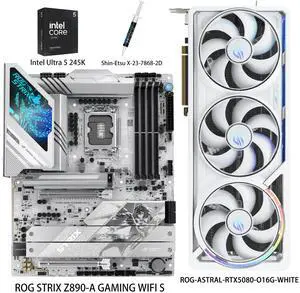 ASUS GPU& Motherboard &Thermal paste & CPU Combo, ROG-ASTRAL-RTX5080-O16G-WHITE Graphics Card, ROG STRIX Z890-A GAMING WIFI S Motherboard, Intel Ultra 5 245K CPU, for AI PC, gaming PC